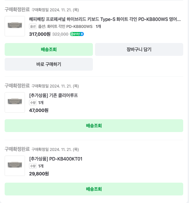 아래는 제가 직접 제돈주고 구매한 실제 내역입니다...