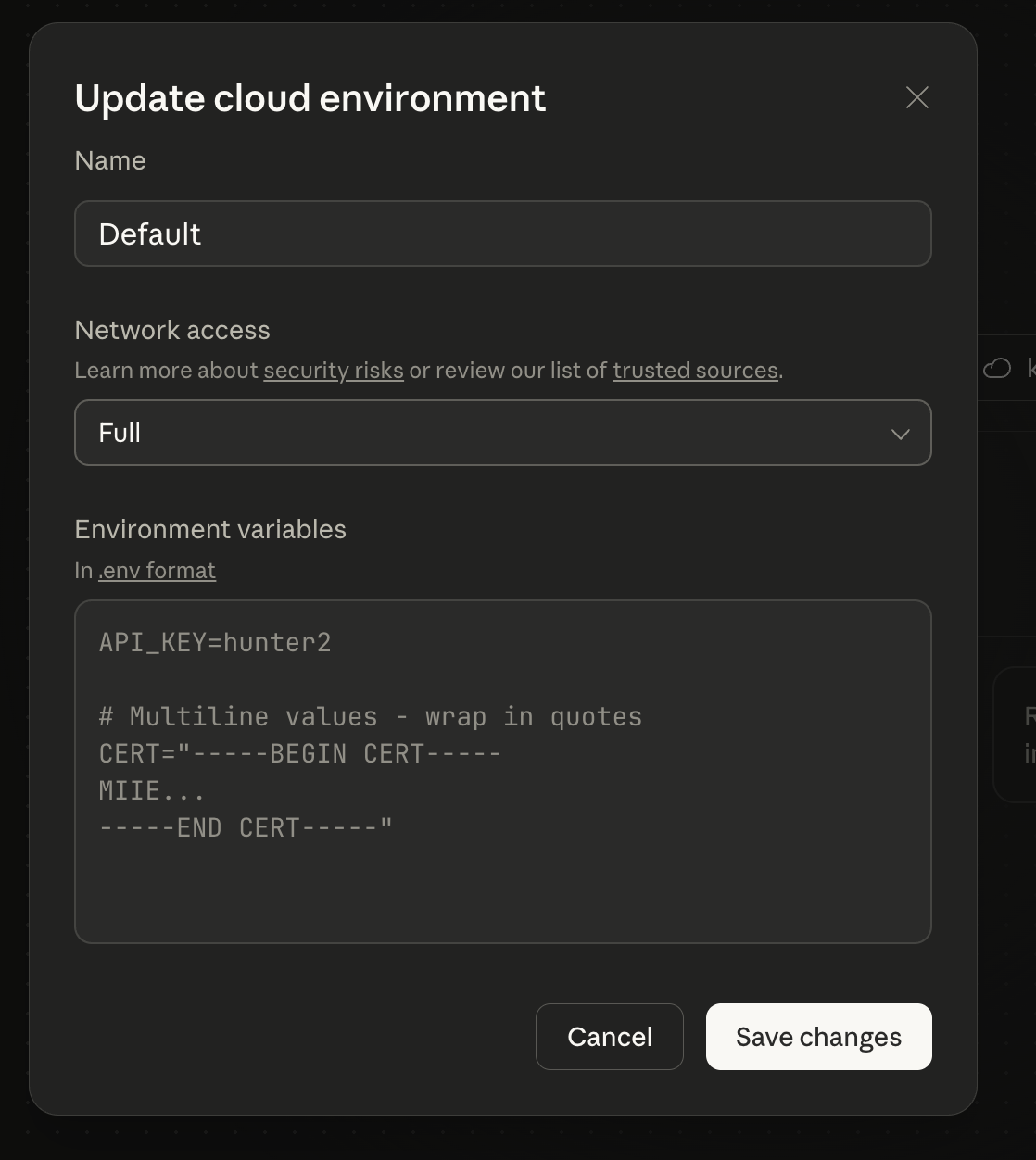 환경설정 톱니바퀴를 누르면 아래와 같이 environment를 설정할 수 있는데요