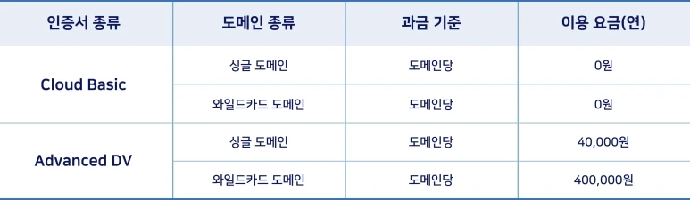 | 구분 | Cloud basic | Advanced DV | 외부 인증서 등록 |